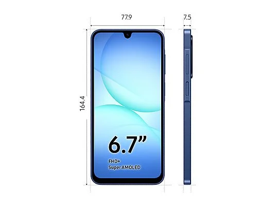 Smartphone 5G de alto rendimiento con pantalla Super AMOLED de 6.7″, cámara triple de 50 MP con estabilización óptica, batería de 5000 mAh con carga rápida y actualizaciones garantizadas por 6 años. Potente, resistente y con diseño elegante: el Galaxy A17 5G está listo para todo.