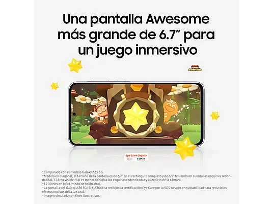 El Samsung Galaxy A36 5G llega con funciones potenciadas por IA, una pantalla Super AMOLED FHD+ de 6.7” con tasa de refresco de 120 Hz y brillo de hasta 1200 nits, y un diseño premium con trasera de cristal y protección IP67.